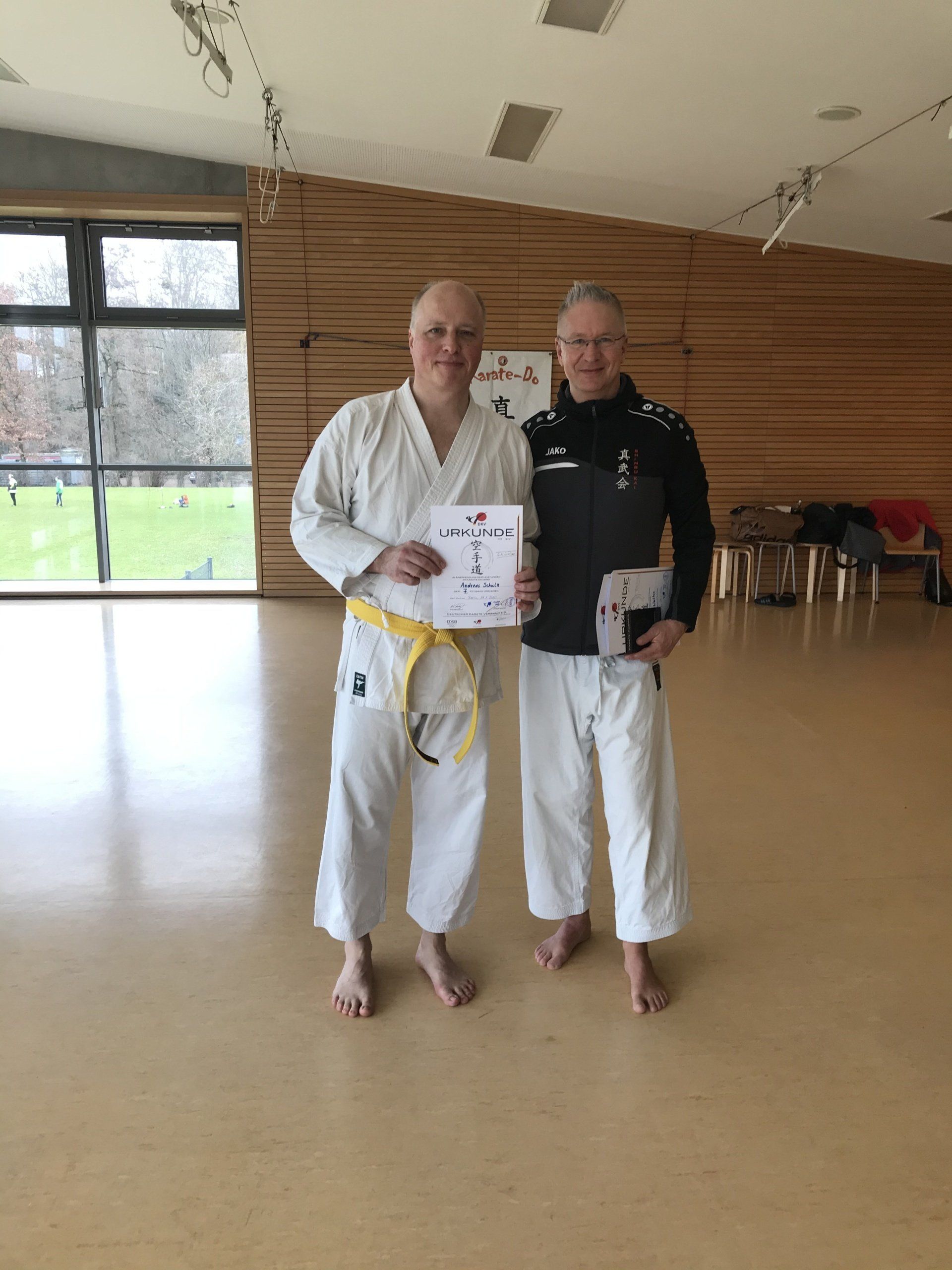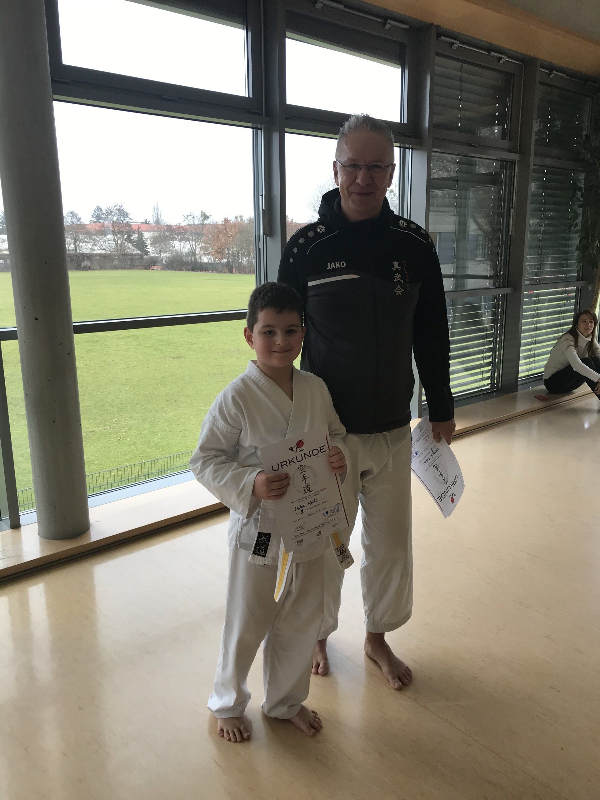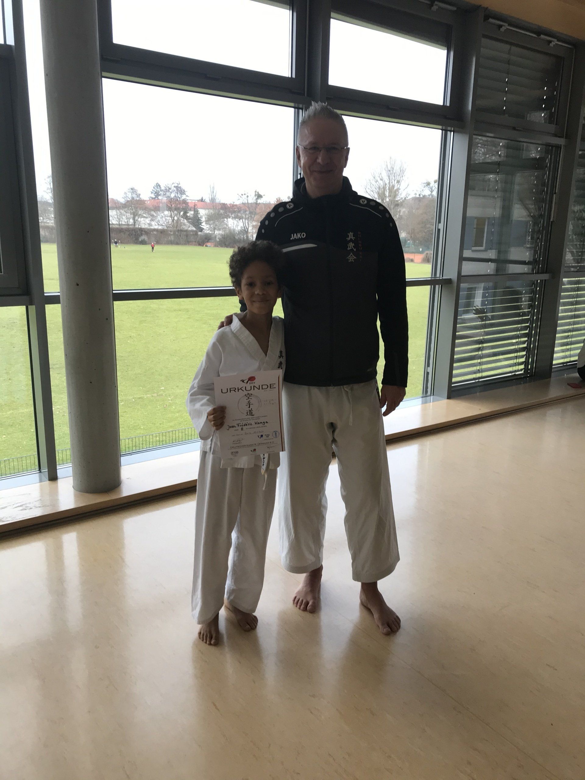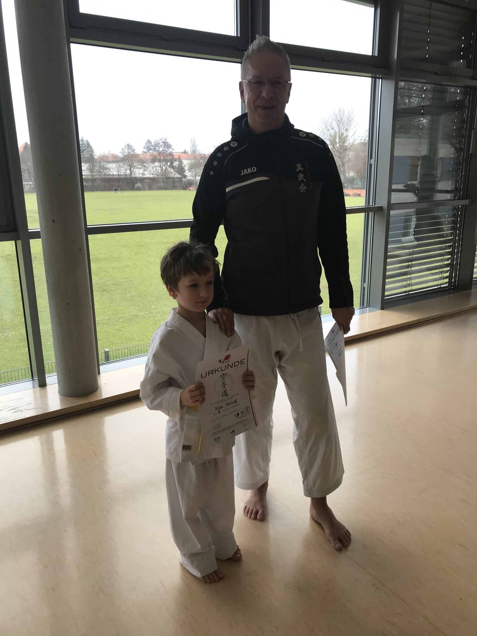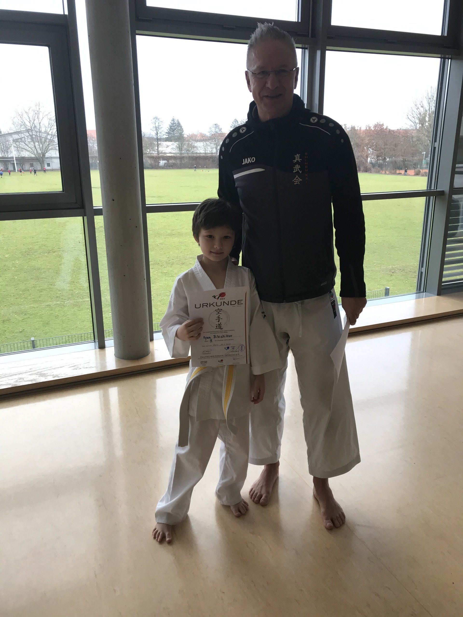 Gerade haben wir Weihnachten und Silvester gefeiert, starten wir ins neue Jahr mit 13 tollen Gürtelprüfungen. Acht Weißgurte und ein Weiß-Gelbgurt konnten erfolgreich Ihre gelernten Kata und Kampftechniken zeigen. Unsere jungen Karateka waren sehr aufgeregt, bewiesen, was sie in den vergangenen Monaten gelernt haben und stellten sich den offiziellen SOK Kyu-Prüfungen für eine neue Gürtelfarbe. Unser Berliner Cheftrainer Piet Kroll (3. Dan, lizensierter Karatetrainer, Prüfer, Vorsitzender der Karateabteilung Shinbukai im PSB24, Mitglied in der DAN Akademie im DKV) motivierte, lobte den Fleiß und Einsatz für die Prüfungsvorbereitungen und freute sich über die zahlreichen ebenfalls aufgeregten Eltern, die zur seelischen Unterstützung erschienen sind. Gestartet wurde mit den Prüfungen zum Weiß-gelb – und Gelb-Gurt. Herzlichen Glückwunsch Damian, Yumi, Benjamin, Milan, Ryan, Jonathan, Luka, Leo zum 9. Kyu und Frédéric zum 8.Kyu. Anschließend legten unsere Zwillinge Mia und Kim die Prüfung zum ersten Braungurt (3. Kyu) ab und zeigten sehr anspruchsvolle Kata, wie Bassai Dai und Naihanchi. Unsere Shotokaner machten eine Orange-Gurt- und Blau-Gurt-Prüfung und zeigten in Bunkai (Kampf-Anwendungen) Ihre gelernten Techniken. Es war wirklich toll anzuschauen! Herzlichen Glückwunsch, Mia und Kim zum 3. Kyu, Olaf zum 5. Kyu und Andreas zum 7. Kyu. Am Ende wurden alle mit viel Applaus belohnt und waren sehr glücklich. Piet überreichte mit persönlichen Worten für jeden eine Urkunde und dann ging es ab zum Feiern.